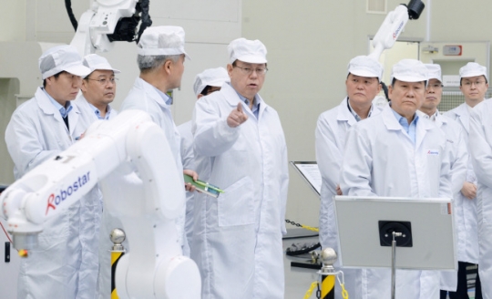 LGÀüÀÚ ´ëÇ¥ÀÌ»ç CEO Á¶¼ºÁø ºÎȸÀå(°¡¿îµ¥)ÀÌ Áö³­ÇØ °æ¿µ±ÇÀ» ÀμöÇÑ »ê¾÷¿ë ·Îº¿ Á¦Á¶¾÷ü ¡®·Îº¸½ºÅ¸¡¯¸¦ ¹æ¹®ÇØ »ê¾÷¿ë ·Îº¿À» »ìÆìº¸°í ÀÖ´Ù.[LGÀüÀÚ Á¦°ø]